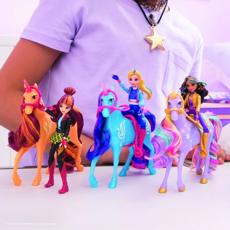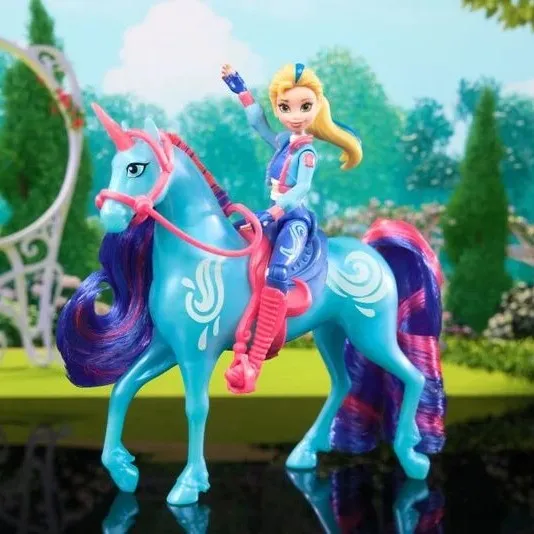 Set Unicorn Academy Isabel i River donosi čaroliju Netflix serije u dječju sobu s pomičnom lutkom Isabel i njenim vjernim jednorogom Riverom. Djeca mogu ponovno proživljavati omiljene avanture, češljati River grivu i rep te ukrašavati dodatcima. Zahvaljujući sedlu Isabel može jahati na River i smišljati nove priče.